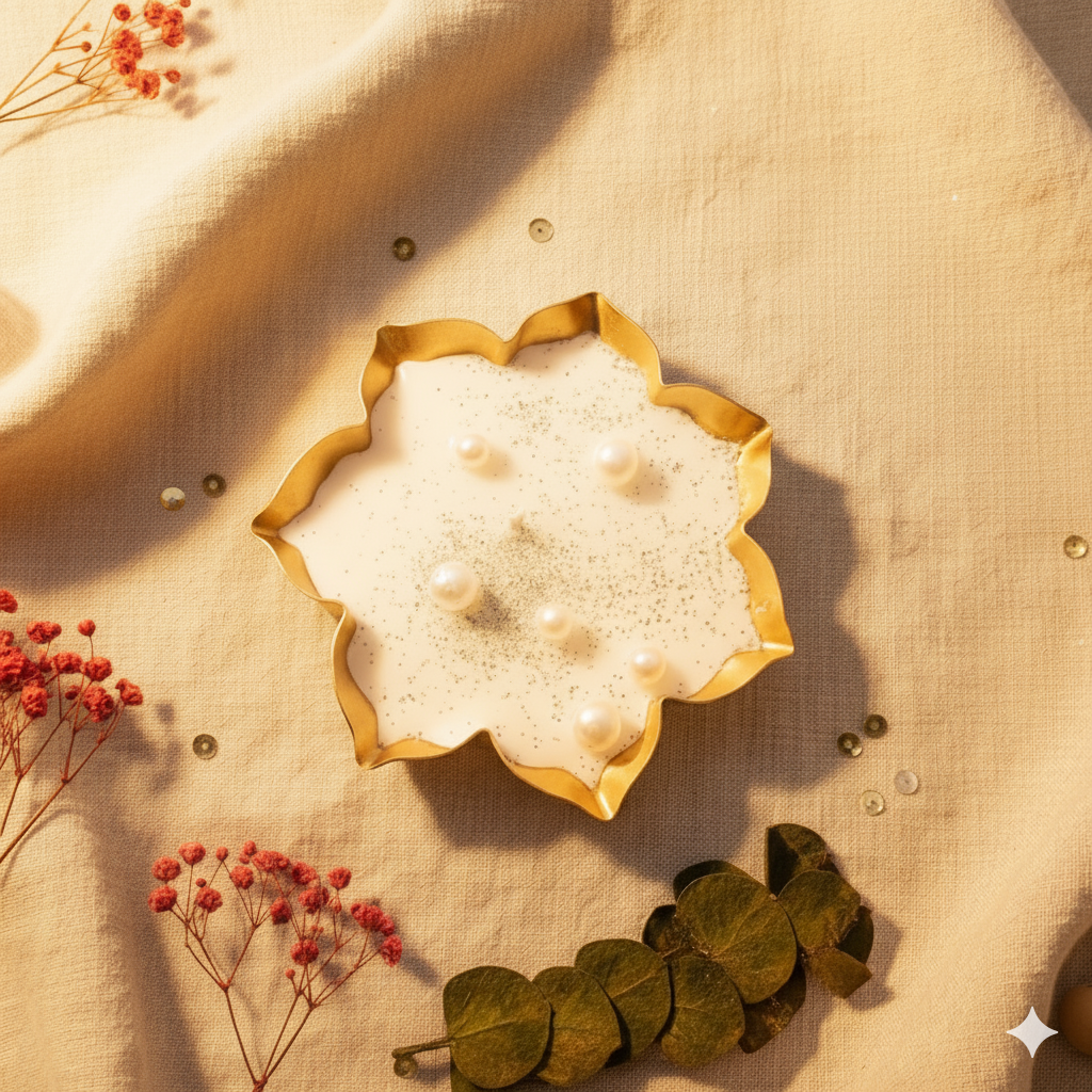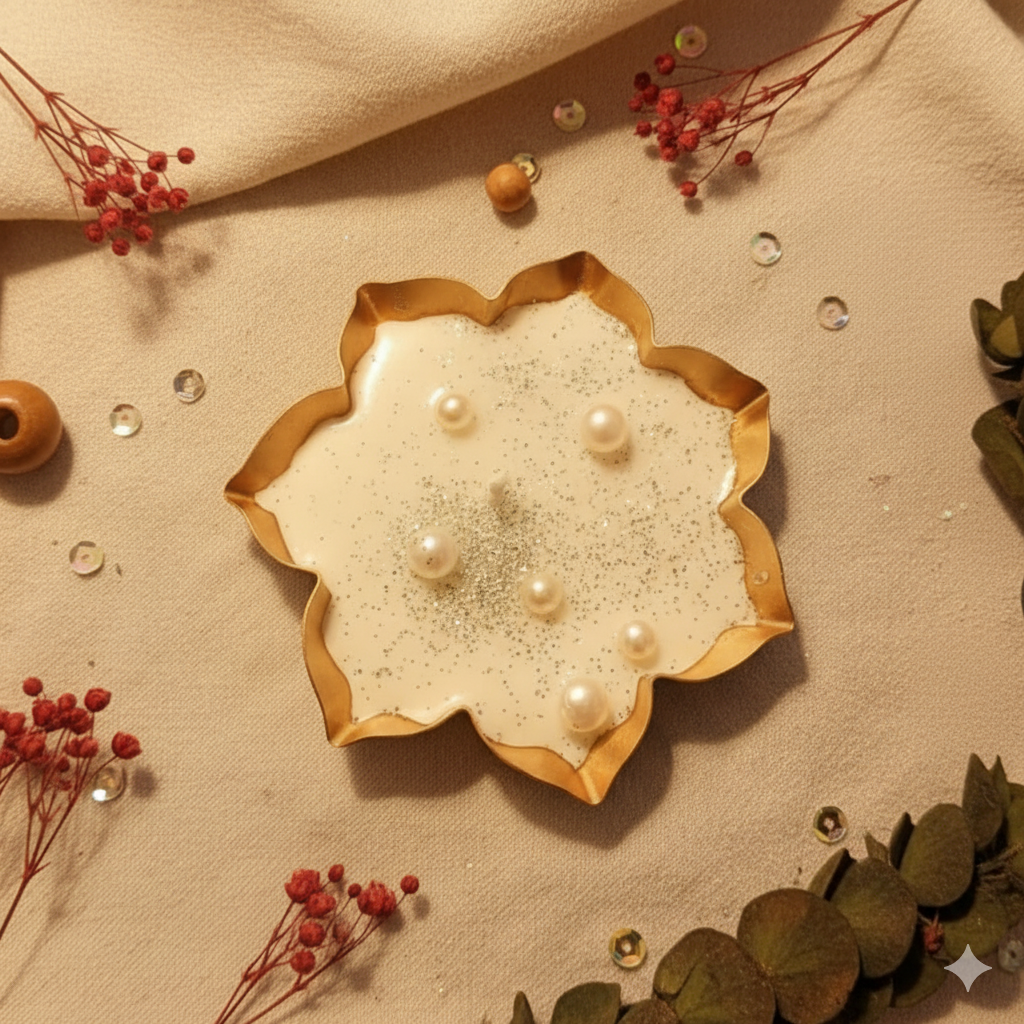 Add fragrance and elegance to your celebrations with our 3.5-inch Lotus Scented Urli Candle. Hand-poured in a beautiful golden floral design, this decorative candle not only adds a touch of elegance to your home but also fills the air with a soothing aroma. Perfect for Diwali décor, festive occasions, or daily home styling. This scented urli candle creates a warm and welcoming ambience, making it a thoughtful choice for gifting loved ones or enhancing your own living space.
